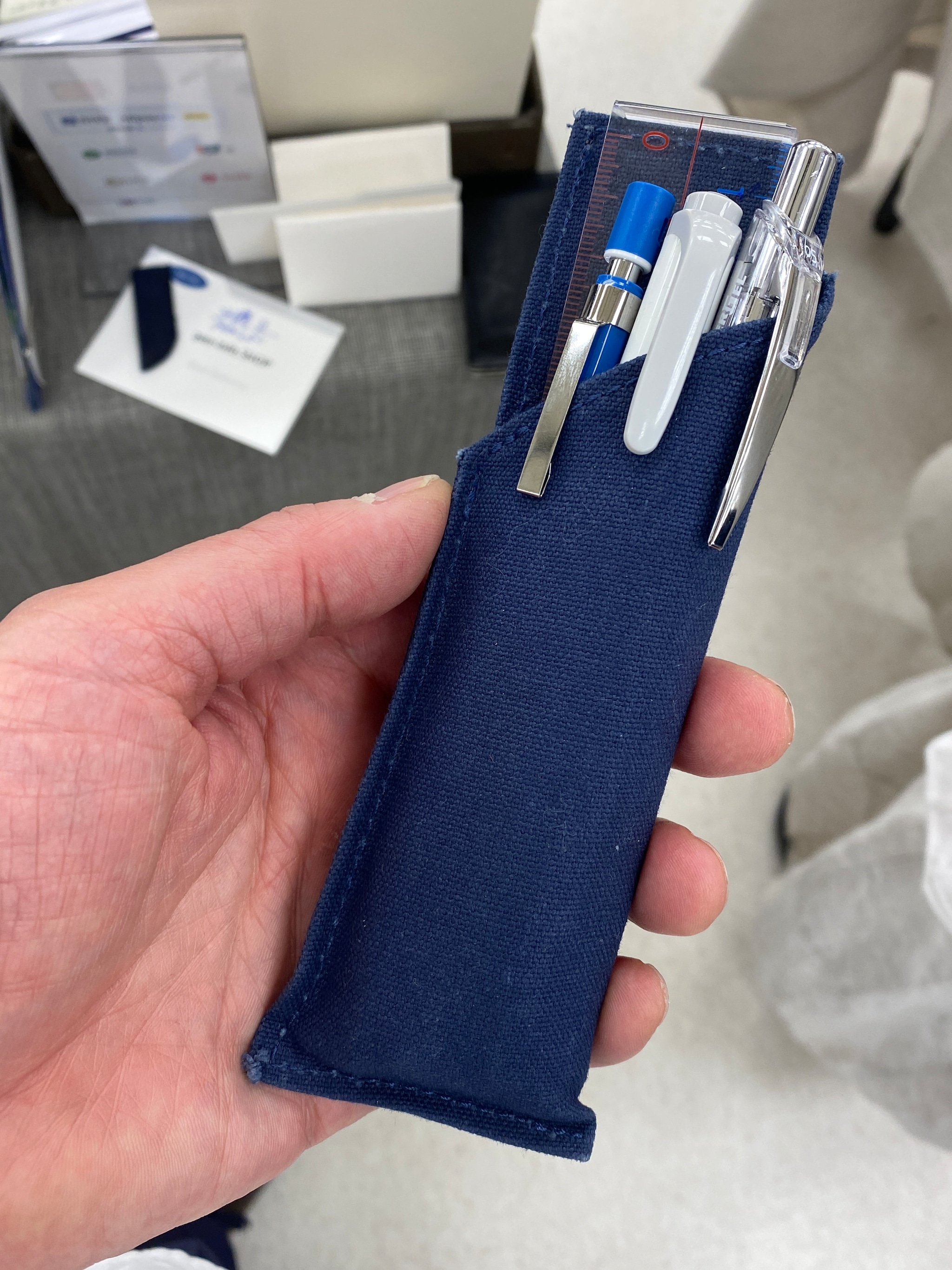 イベントなどに出展していますと、pen-info SHOPで買っていただいたユーザーの皆さんにお会いします。その時に速筆ペンホルダーを見せていただくのを楽しみにしております。みなさんそれぞれの使い方をされていて、とても参考になります。入れているペンやノートでその方の個性が見えてくるような気がいたします。