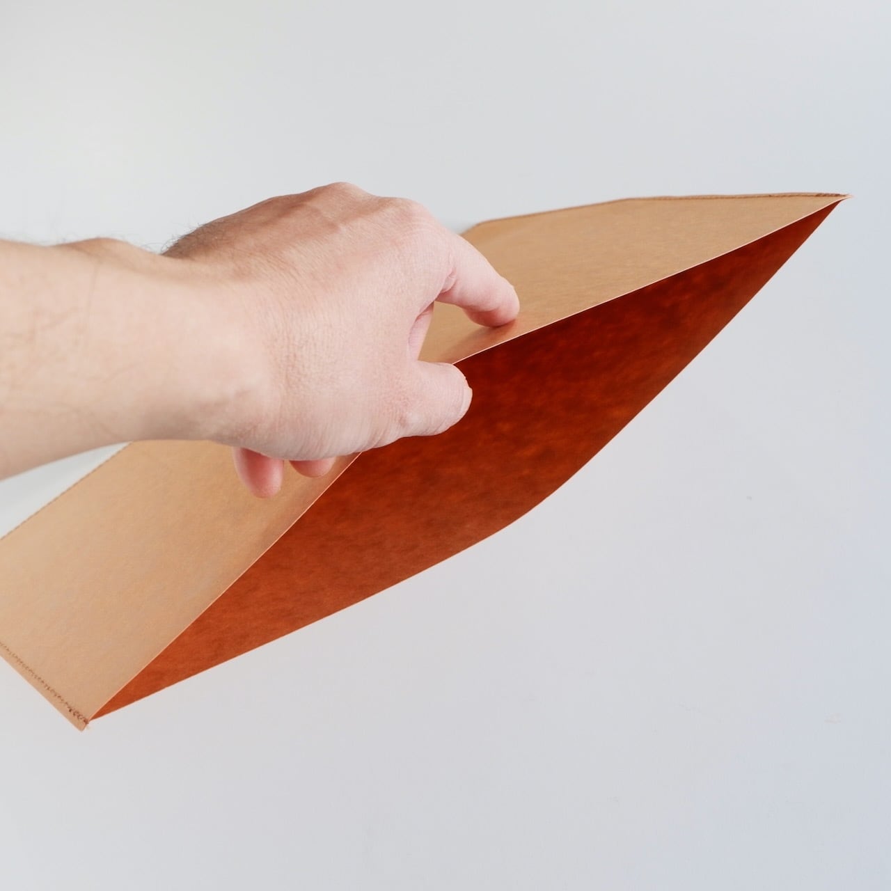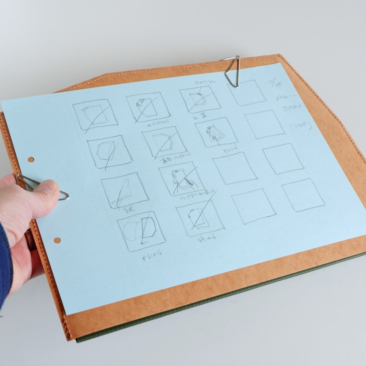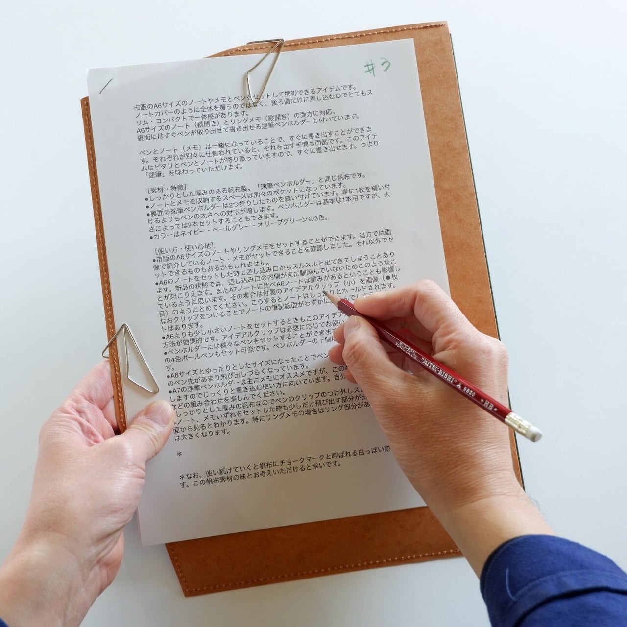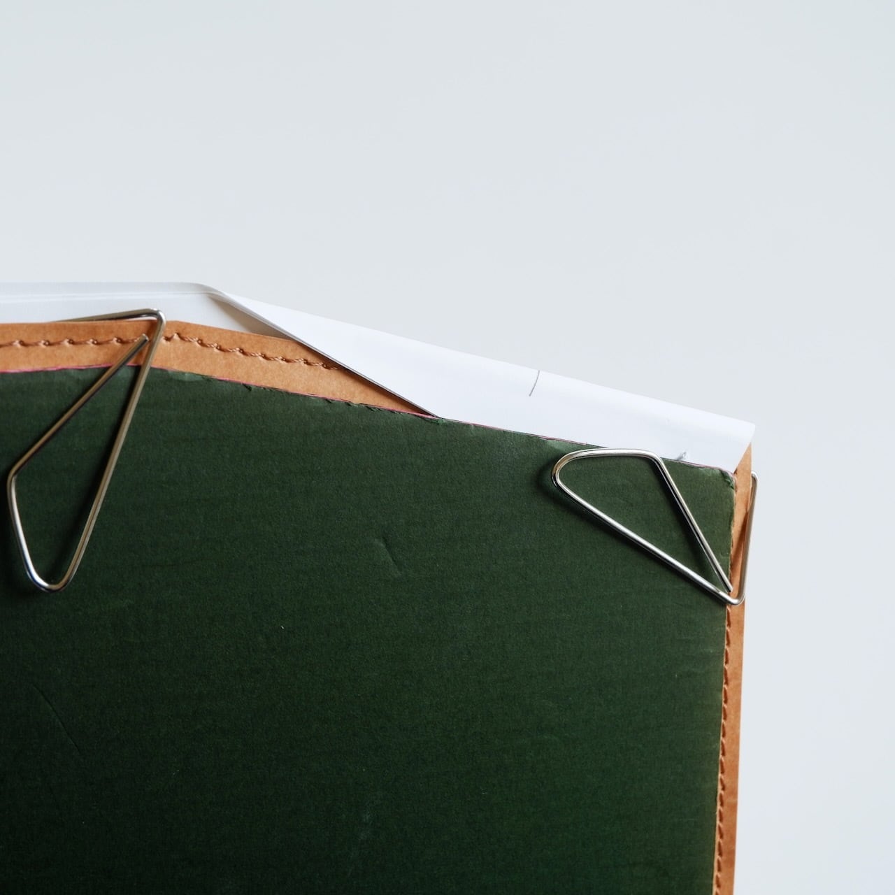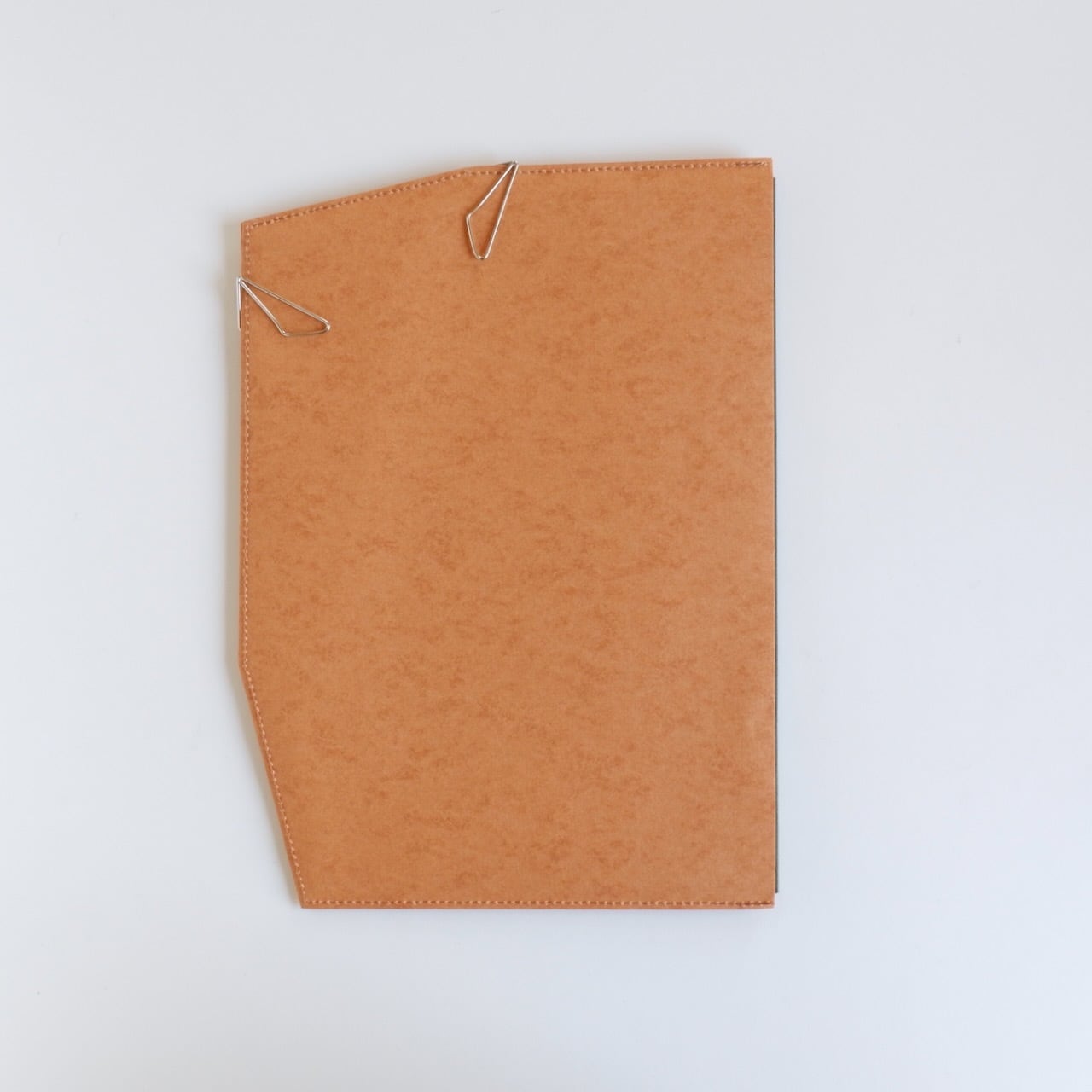 エアフォルダーPageはファインフルートというダンボール構造の紙で出来ています。そのため長く使っていますと、表面にダンボール構造特有の筋が現れてきます。それも味なのですが、紙をセットして書くときに多少凸凹が気になることがあります。そこで快適に筆記できるように、このカバーを作りました。